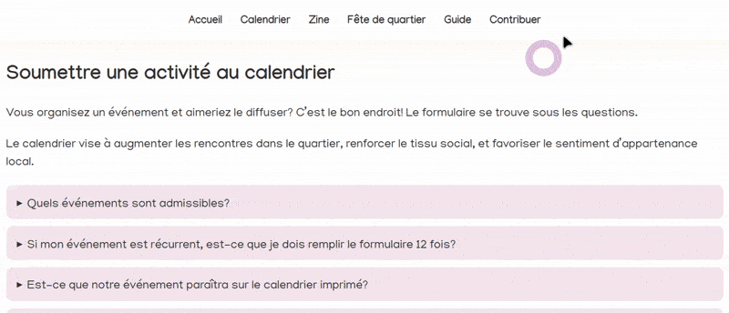 Vous organisez un événement et aimeriez le diffuser? C’est le bon endroit! Le formulaire se trouve sous les questions.